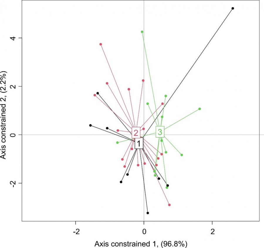 Рис. 3. Визуализация данных анализа избыточности (RDA)
