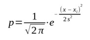 или p = (1/(2π)1/2)*exp(−(x − xj)2/2*s2),